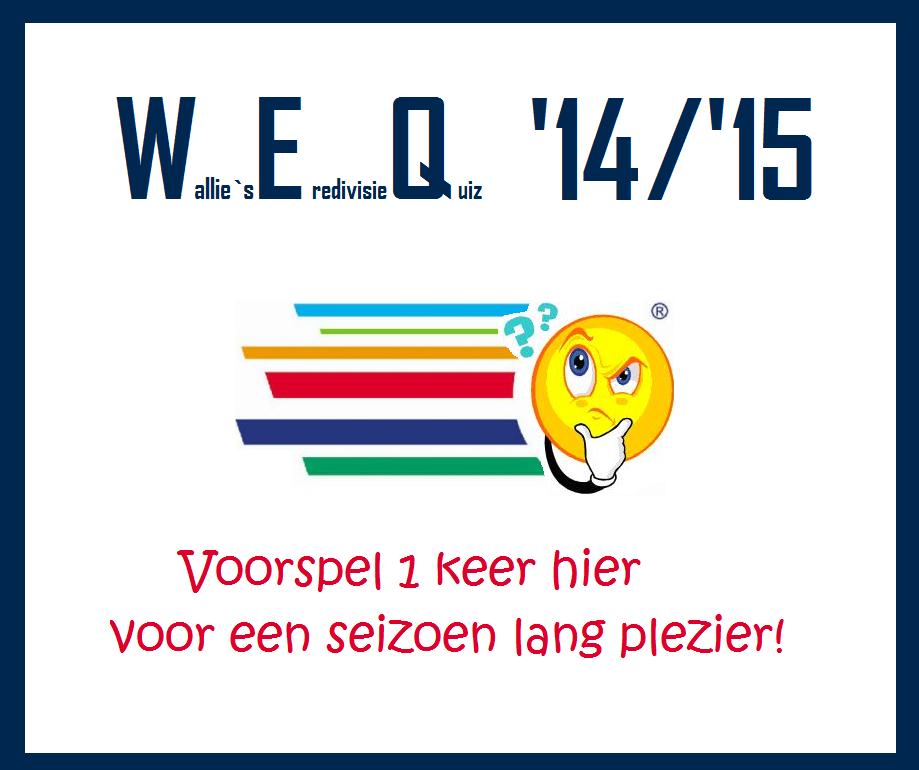 Het WK is nog maar net achter de rug, of de start van de Eredivisie `14/`15 staat alweer voor de deur. De inschrijvingen voor de WEQ `14/`15 zijn daarom weer geopend! Wil je meedoen en een greep doen naar een plek in de enige echte WEQ Hall of Fame? Verdiep je dan éénmalig in het aanstaande seizoen, stuur je verspelling in (klik op deelnemen voor meer informatie) en je bent gegarandeerd van een jaar lang extra beleving van de Nederlandse Eredivisie. Kleine moeite, veel plezier!